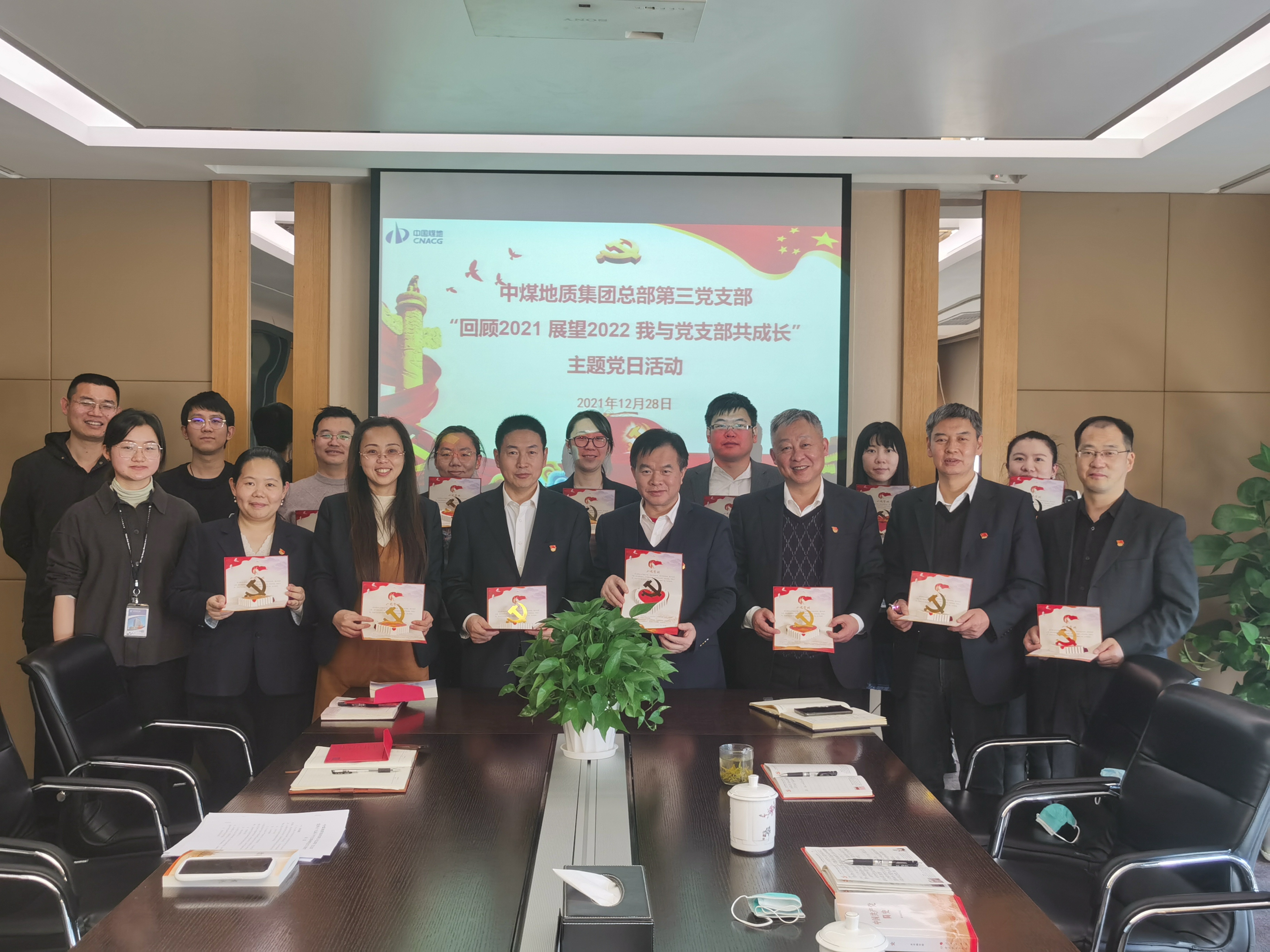 12月28日,总部第三党支部组织开展“回顾2021 展望2022 我与党支部共成长”主题党日活动。地质集团党委委员、副总经理禹建兵,党委委员、副总经理黄勇以普通党员身份参加活动。