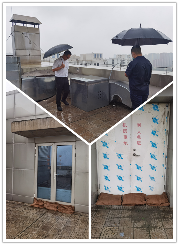 物业服务公司及时通过微信群、大厦一层电子屏幕发布极端天气预警提示;组织大厦屋面和四层平台雨水口、电梯机房、大门口等重点部位隐患点排查,提前封堵避免倒灌;防汛物资和设备设施准备到位,外部房产提前安全巡查;夜间关键岗位安排负责人24小时值守,不在岗人员保持通讯畅通,随时应对突发事件。