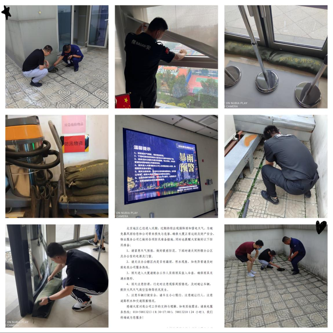 据预报,近期北京还将有较多降水,物业服务公司不放过任何一个漏洞,不丢掉任何一个盲点,多措并举筑牢防线,全力保障大厦安全。