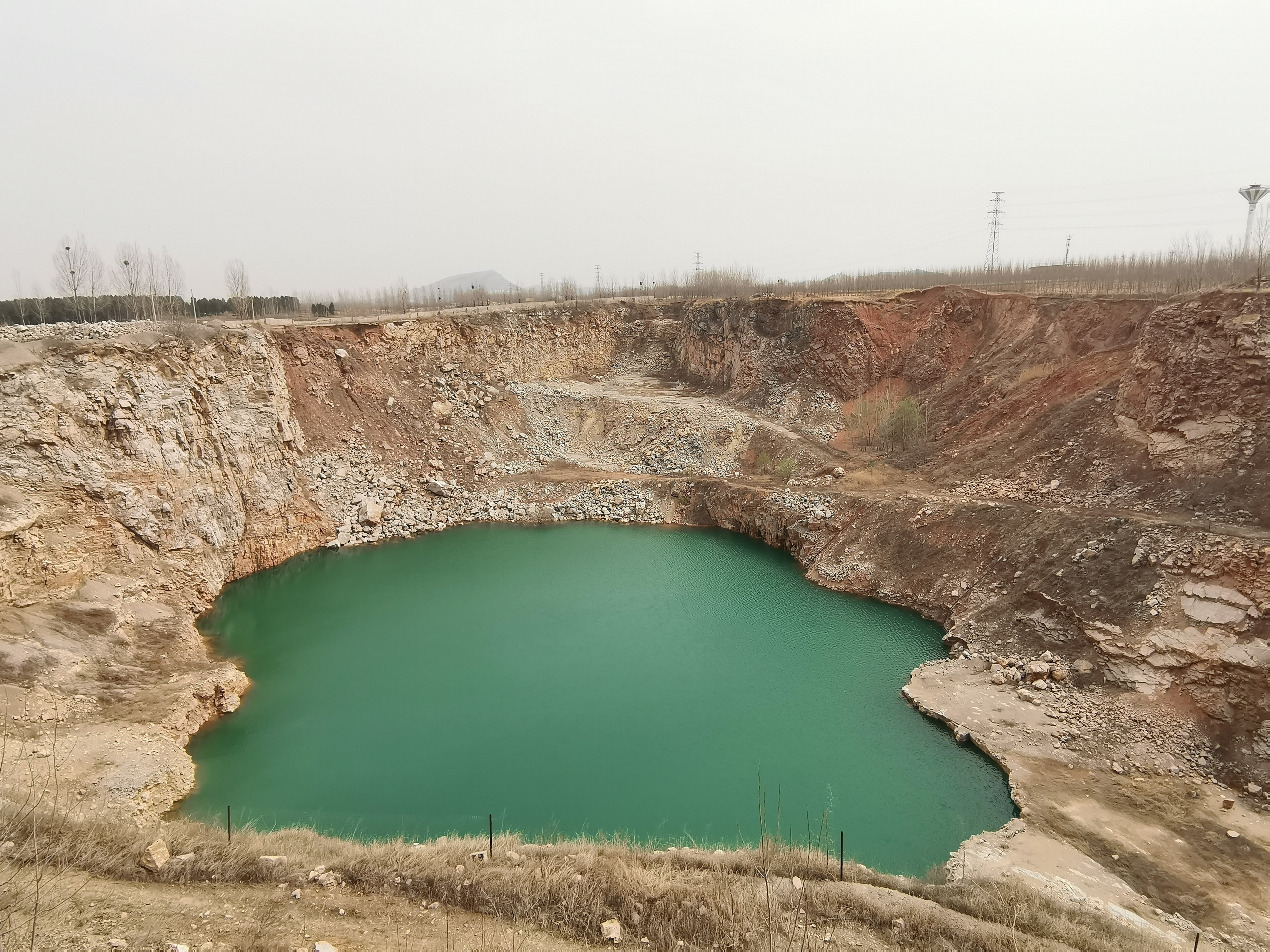 图为采坑遗留的采坑,边坡出现严重崩塌、滑坡,类似发生灾害的采坑在项目区内共有8处,项目组将“一坑一策”制定针对性的治理方案。