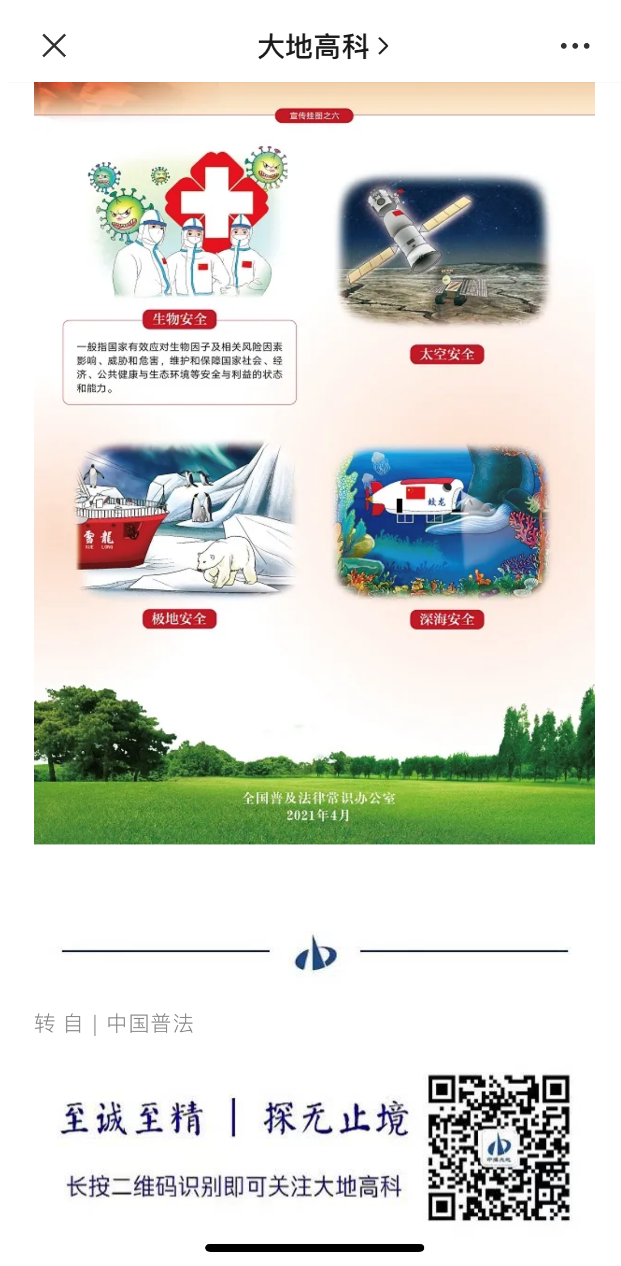 北京水工环地质勘探院组织了全民国家安全教育日普法培训宣传讲解活动,将生物安全法和地质勘探行业特性相结合,针对物种入侵等问题,从统筹发展和安全战略高度,认识实施好生物安全法的重要性。水工环院还鼓励职工利用业余时间学习国家安全法律法规,提高国家安全意识。