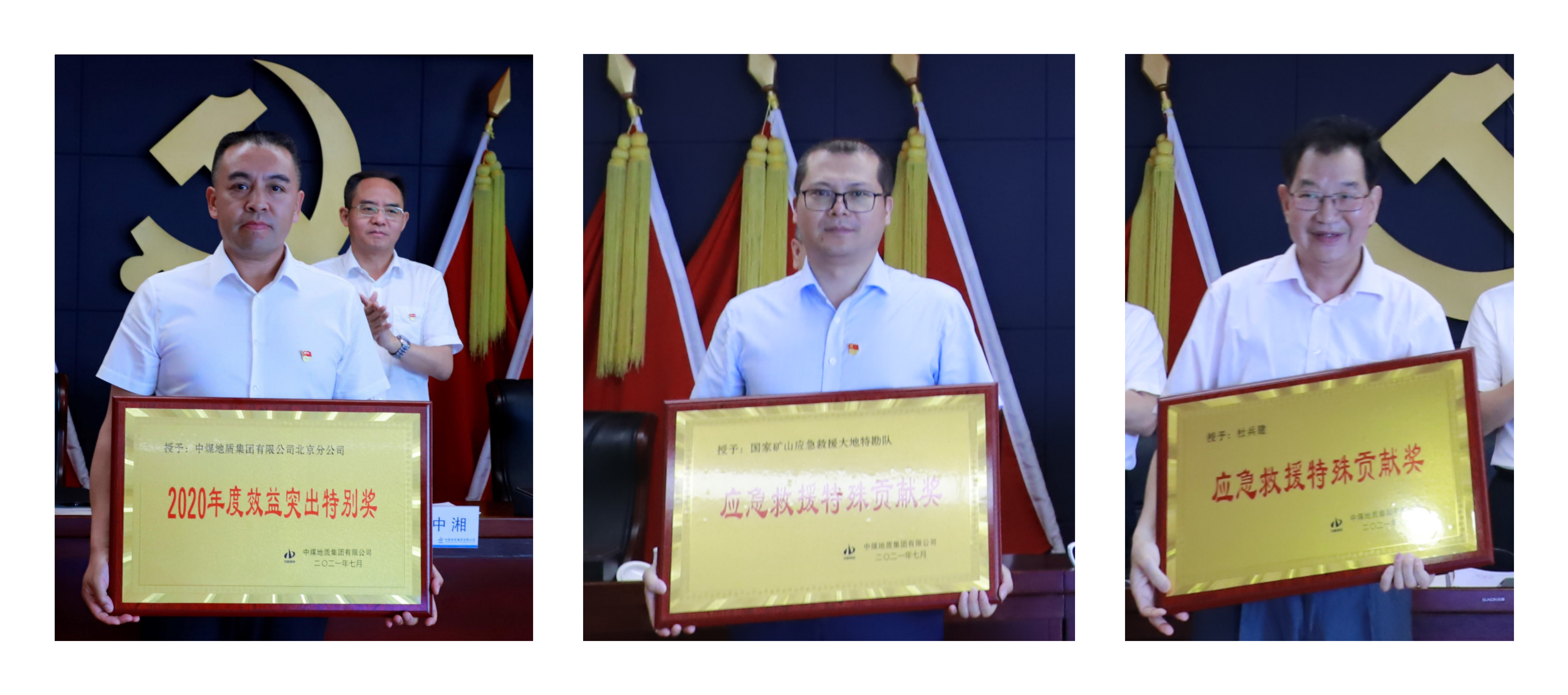 会上为获得特别奖励的北京分公司、国家矿山应急救援大地特勘队和国家矿山应急救援大地特勘队总工程师杜兵建进行了颁奖。北京水工环地质勘查院、上海中煤物探测量有限公司(上海分公司)负责人作为经营单位代表分别在会上作了交流发言。
