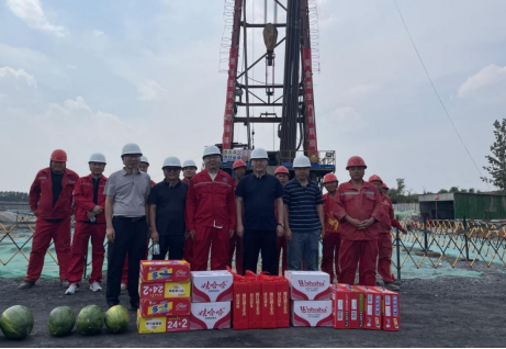 地质集团领导分组带队奔赴各地一线项目,代表集团为辛勤工作、默默奉献的一线岗位职工送去了关怀,切实让他们感受集团无微不至的关爱。每到一处,慰问组都与奋战在高温一线的职工进行亲切交流并表示感谢,嘱咐他们一定要劳逸结合,牢记安全生产,注意防暑降温,做到保安全、保生产、保优质,表达了工会“娘家人”的关心。