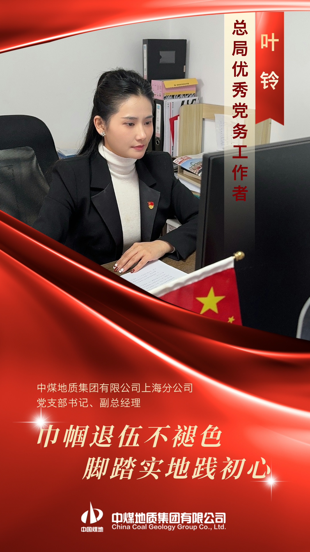 叶铃,自任地质集团上海公司党支部书记以来,注重加强基层党组织建设,以建设政治功能强、支部班子强、党员队伍强、作用发挥强的项目党小组为目标,夯实党支部标准化规范化根基。通过加强沟通、倾听意见、关注需求等方式,增强了团队的凝聚力和向心力。