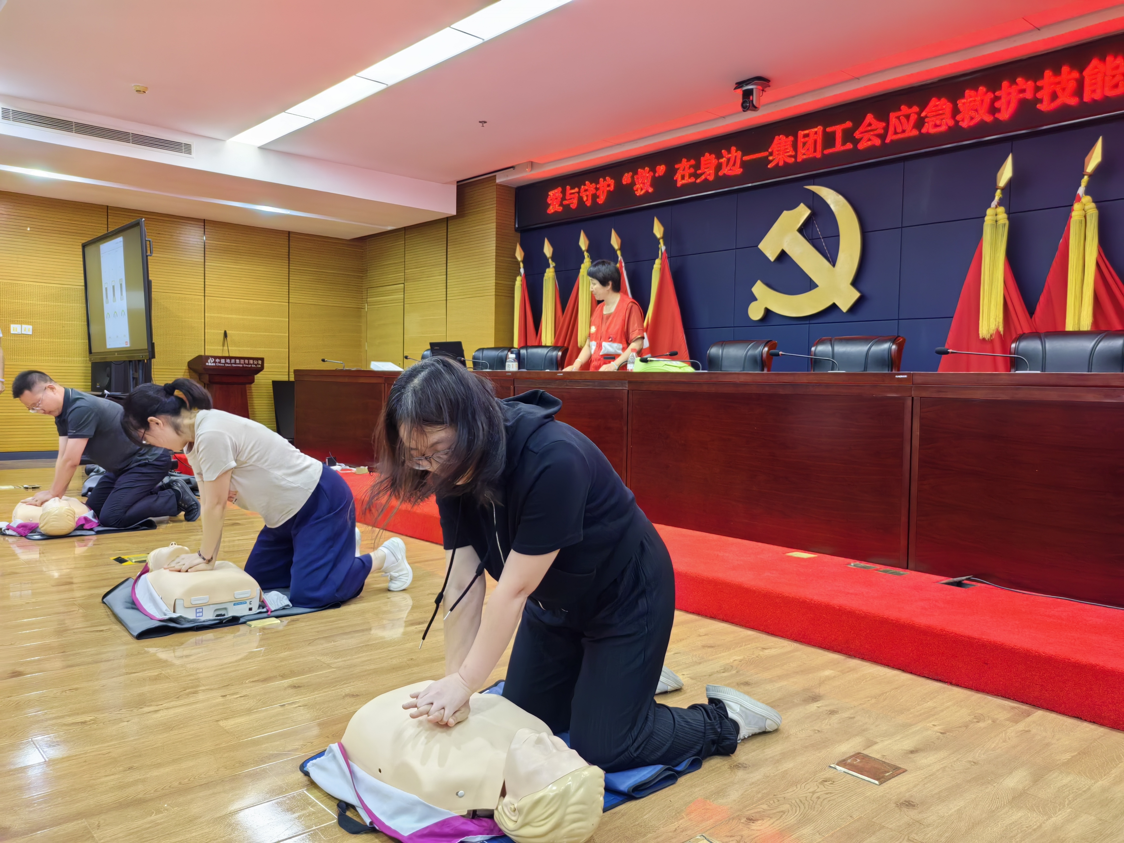 为提高地质集团职工应对突发事件时的自救互救意识与能力,8月2日,地质集团工会联合北京市石景山区八宝山街道中煤楼宇工作站开展“爱与守护 ‘救’在身边”应急救护取证培训活动。此次培训由地质集团总部工会承办,49名职工参加。